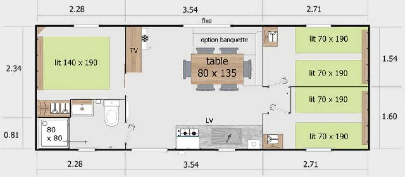 Mobil home 8m70 x 3,50– maximum 8 personnes – ancienneté : neuf
